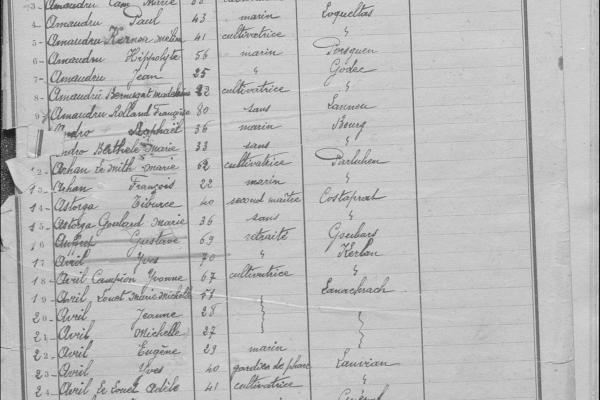 Les nouvelles ressources disponibles en ligne Série Cote Descriptif Série E 5 E Tables décennales de l'état-civil : Communes de Saint-Renan à Trézilidé. Série E Dépôt 1179 E Dépôt Archives communales de Plougonvelen. Complément état civil. 1219 E Dépôt Archives communales de Quimperlé et anciennes paroisses rattachées. Complément état civil. 1232 E Dépôt Archives communales de Saint-Eloy. Complément état civil. 1145 E Dépôt Archives communales de Penmarc’h. Complément état civil. 1270 E Dépôt Archives communales de Tourc'h. Complément état civil. 1082 E Dépôt Archives communales de Kernilis. Complément état civil. 1278 E Dépôt Archives communales de Trégarantec. Complément état civil. 1083 E Dépôt Archives communales de Kernoues. Complément état civil. 1183 E Dépôt Archives communales de Plouguin. Complément état civil. 1254 E Dépôt Archives communales de Saint Thois. Complément état civil. 596 E Dépôt Délibérations des conseils municipaux: Rosnoën (1921-1936). Série Q 3 Q 7590-7607 Tables des décès et successions : Bureau de Lanmeur. 3 Q 8008-8033 Tables des décès et successions : Bureau de Lannilis. 3 Q 8495-8530 Tables des décès et successions : Bureau de Lesneven. 3 Q 9042-9109 Tables des décès et successions : Bureau de Morlaix. 3 Q 9953-9964 Tables des décès et successions : Bureau de Plabennec. 3 Q 10145-10161 Tables des décès et successions : Bureau de Pleyben. Série U 54 U 4/1-4 Justice de Paix du canton de Quimper : 4 tables alphabétiques des conseils de famille (1872-1920). Série X 1 X à 5 X La série X (Assistance et prévoyance sociale (1791-1959), bénéficie à présent d'un tout nouvel inventaire numérique en remplacement de sa version pdf.