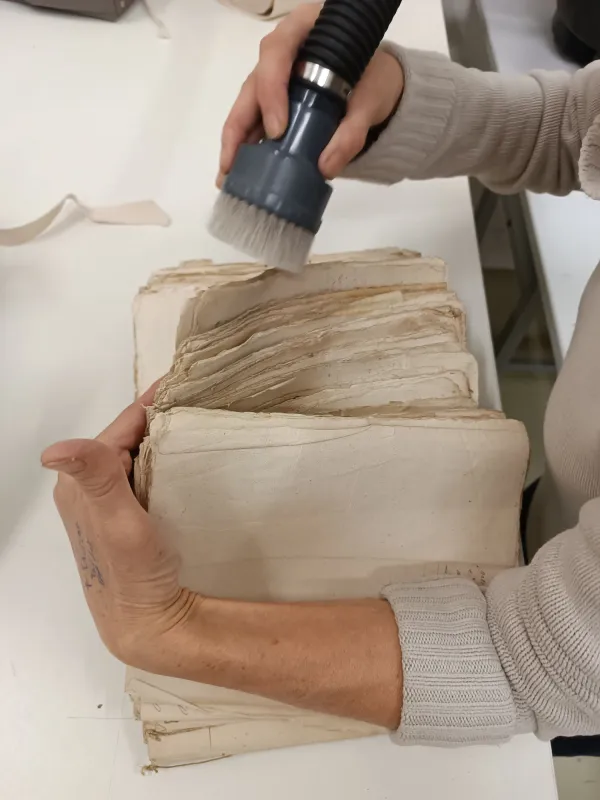 On transmet On transmet Sortez les archives : Une rencontre autour du « train-carottes » qui reliait à partir de 1912 Pont-l'Abbé à Audierne en passant par Pont-Croix. Troisième édition du dispositif de parcours mémoriel qui permet d’approfondir les connaissances des élèves de troisième sur la seconde guerre mondiale. Remise du prix CNRD - 2024 PrécédentSuivant PrécédentSuivant 157 activités culturelles et pédagogiques organisées par le service en 2024 . On expose ... sur place ou hors les murs On expose ... sur place ou hors les murs Exposition les femmes dans la Résistance - 2025 Exposition Auprès de mon arbre - 2025 Exposition La mer c'est classe ! 2024 Salon de la généalogie du CGF - 2024 PrécédentSuivant PrécédentSuivant Les archives dans les médias ... Les archives dans les médias ... Le 24 mars 2025 les AD29 ont été un lieu de tournage pour un reportage sur la mémoire des républicains espagnols Découvrez ce long format réalisé par des étudiants en communication-journalisme de l’IUT de Lannion. À partir de 4 minutes 46, Hugues Vigouroux, archiviste aux Archives municipales de Brest et membre de l’association MERE 29 est interviewé aux Archives départementales, en salle de lecture et en magasin. Publication : Quimper, le temps des trente glorieuses, à l’aube d’une ville nouvelle Le directeur des Archives départementales et son homologue aux archives municipales de Quimper publient ce livre de photos d’époque, en partie issues du fonds Gouiffès PrécédentSuivant PrécédentSuivant On déménage et on réaménage On déménage et on réaménage Les transferts de fonds Brest/Quimper ont démarré en septembre 2024. On collecte On collecte Une collecte haute en couleurs au Musée Breton La grande collecte d’archives privées du 80ème anniversaire de la libération et de la victoire Mur de la mémoire : plus de 70 cartes de combattants volontaires de la résistance ont été collectées PrécédentSuivant PrécédentSuivant Collecte des Archives de l'ile d'Ouessant Conférences et rencontres Conférences et rencontres Spectacle « Vies de papier » par la compagnie La Bande passante Conférences : Les résistantes en Bretagne, par Isabelle Le Boulanger À la recherche des héros et des victimes anonymes de la seconde guerre mondiale en Bretagne par Stéphanie Trouillard Les sources principales de la seconde guerre mondiale, temps d’échange co-organisé par le réseau des archivistes du Finistère Les sources principales de la seconde guerre mondiale, temps d’échange co-organisé par le réseau des archivistes du Finistère Affluence pour la première du documentaire Seznec, la fabrique de l’affaire du siècle, le 24 octobre 2024. PrécédentSuivant PrécédentSuivant On restaure... On restaure... En 2024, plus de 1000 documents ont été restaurés par l’atelier du service. On estampille ! On estampille ! Placement en chambre humide ... Placement en chambre humide ... On se forme ! On se forme ! L’équipe des archives se forme à un nouveau Système d’Information Archivistique, que les lecteurs découvriront au tout début de l’année 2026 . Parfois on élimine ... Parfois on élimine ... plus de 10 kilomètres linéaires éliminés en 2025 ! Et on numérise encore et encore ... Et on numérise encore et encore ... 237 207 nouvelles vues numérisées en 2024 ! On dépoussière ... On dépoussière ... On conditionne On conditionne 866 ml d’archives traitées en 2025 !