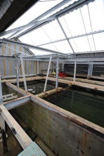 L'ancienne écloserie à homards en mars 2013. Archives départementales du Finistère Photo Archives départementales du Finistère PrécédentSuivant Le contexte est favorable. Plusieurs projets expérimentaux d'écloseries viennent de voir le jour sur les côtes françaises (écloserie de l'Ile-d'Yeu et de l'Ile-d'Houat en 1972). Les îles du Ponant sont en effet privilégiées pour ce type d'implantation eu égard à la dépendance de la population à la ressource marine côtière (soutien de la population locale) et à la qualité de leurs eaux. Lors de la saison 1973, l'écloserie du Groupement coopératif de l'Ile-d'Houat livrait déjà 150 000 bébés homards, avec un taux de survie post-larves de 100%, dépassant de ce fait largement l'objectif de production initial de 100 000 crustacés. Tenant compte de cette performance, l'écloserie de l'Ile-de-Sein ambitionne dès la naissance du projet de disposer environ chaque année de 300 000 jeunes pour repeupler valablement les fonds proches de l'île. Ce projet évoque même un chiffre de 500 000 homards par an à brève échéance afin de repeupler l'aire maritime de la région du Cap. A sa mise en oeuvre, la coopérative maritime assurant le fonctionnement de l'écloserie regroupe les organismes suivants : la commune de l'Ile-de-Sein (maître d'oeuvre de l'opération), l'Armement Coopératif Finistérien, la mutuelle d'assurance du Crédit Maritime, les coopératives d'Audierne, de l'Ile-de-Sein, de Douarnenez et de Brest, des marins-pêcheurs de l'Ile-de-Sein et d'Audierne, la Société des Grands Viviers d'Audierne. Fonctionnement et difficultés La construction des bâtiments abritant l'écloserie a lieu en 1976, en partie Nord de l'île, aux abords du grand phare, site offrant de larges possibilités pour de futures extensions. L'entrée en service des installations se fait en 1978. Malheureusement, les résultats sont très décevants et l'écloserie de l'Ile-de-Sein demeure très en retrait des productions réalisées par les écloseries des îles d'Houat et d'Yeu. En 1980, la production atteint 102 000 post-larves et 8 500 juvéniles d'un an pour Houat, 177 391 post-larves et 3 240 juvéniles d'un an pour l'île-d'Yeu, quand l'écloserie de Sein n'enregistre aucune production. Selon l'équipe de l'écloserie, cet échec est dû à une température trop basse de l'eau en période estivale (3 à 4°C d'écart avec les eaux des îles d'Houat et d'Yeu à la même période) et à un stock de femelles grainées trop faible par manque d'apports des bateaux de pêche. La diversification des activités apparaît alors comme un recours pour l'écloserie de l'Ile-de-Sein dont les résultats sont trop en deçà des investissements consentis. On tente donc de nouvelles expérimentations comme en 1980, où l'on fait des essais d'alevinage de bars. Cette tentative est un échec et là encore, il semble que la trop basse température de l'eau de mer soit en cause. Pour y remédier, on projette même un temps d'exploiter l'eau chaude récupérable à la sortie du système de refroidissement de la future centrale nucléaire de Plogoff. Ce projet est enterré dans le sillage de celui de la construction de la centrale Revue de presse Retourner à la frise chronologique