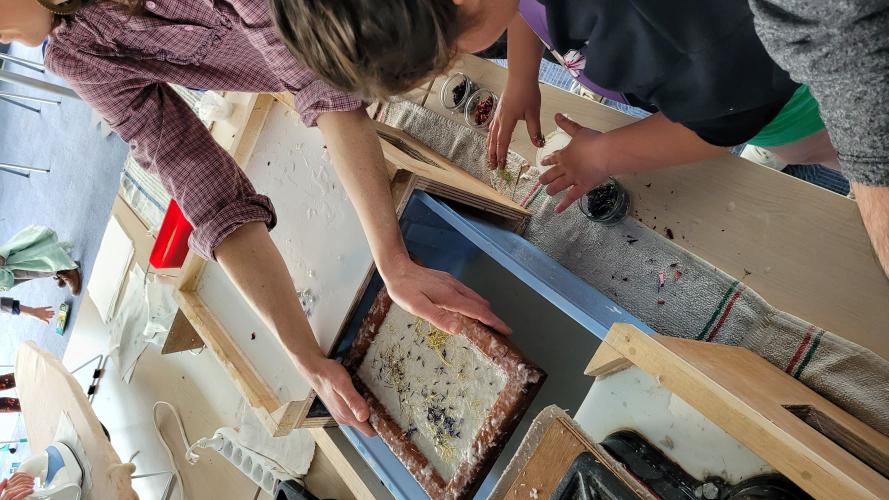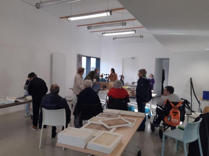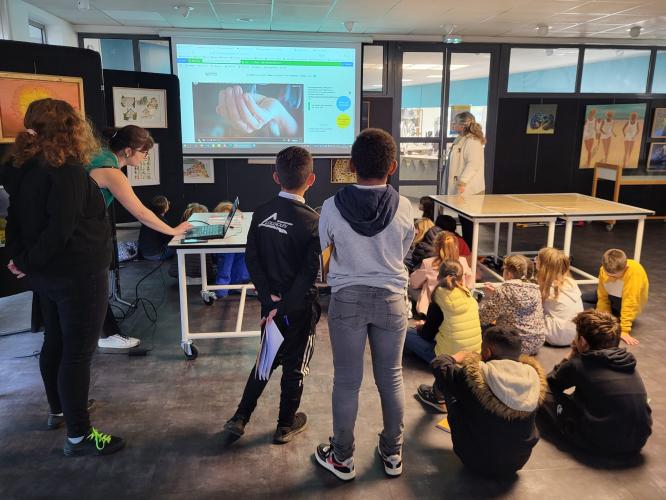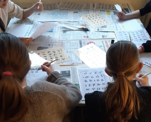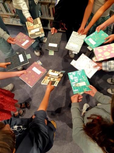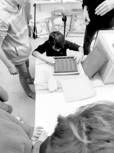 Ateliers pédagogiques Les ateliers en classe, animés par des agents des Archives et accompagnés par l'enseignant, sensibilisent les élèves aux techniques traditionnelles de fabrication du papier et d’une reliure. A travers la découverte de l’histoire des supports de l’écriture, de la manipulation de matériel pédagogique, de la fabrication d’une feuille de papier et de la création d’une reliure, le cycle d’ateliers « Histoire(s) d’écriture(s) » permet une mise en situation pratique de chaque élève tout en développant un projet pédagogique collectif autour d’un thème littéraire, historique, géographique, artistique, scientifique... Médiathèque Baye Médiathèque Guilers Médiathèque Plouénan Médiathèque Riec-sur-Bélon Collège Kervihan Fouesnant (Prêt de mallette "Ecrire à la plume d'oie") Collège Brizeux Quimper Collège Saint Joseph Concarneau Bibliothèque Gouesnac'h Collège Saint-Martin-des-Champs Médiathèque de Plouhinec PrécédentSuivant PrécédentSuivant Revue de presse 12/03/2024 Le Télégramme : https://www.letelegramme.fr/finistere/gouesnach-29950/a-gouesnach-la-bi… 22/11/2023 Le Télégramme : https://www.letelegramme.fr/finistere/riec-sur-belon-29340/des-document…