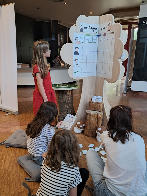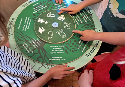 Panneaux et modules Fichier Découvrir l'ensemble de panneaux au format PDF (.pdf - 26.81 Mo) 15 panneaux roll-up 85X200 cm (structure en alu avec enrouleur et housse de transport) 1 livret-jeux "Faustine et les mystères de la généalogie" 12 fiches "lecture facile" Plusieurs outils de médiation 1 set de jeu "Les branches parlantes" Les branches parlantes Historique de vies Devine qui je suis La roue des ressources Les modalités d'emprunt Vous pouvez réserver cette exposition ! La mise à dispositions de l'exposition est gratuite. Toutefois, une attestation d'assurance est demandée pour couvrir une valeur de 2 500,00 €. Un dossier-navette vous sera transmis avec la fiche de prêt de l'exposition, la fiche de constat pour l'ensemble des composants (état des lieux) et la fiche bilan de l'exposition (statistiques de fréquentation). Le transport et le montage de l'exposition sont assurés par l'emprunteur. Le démontage et le retour de l'exposition sont également assurés par l'emprunteur. L'exposition est à retirer aux Archives départementales à Quimper, 5 Allée Henri Bourde de La Rogerie (un utilitaire léger ou un véhicule de type break, banquette arrière rabattue, est suffisant pour transporter l'ensemble en une fois). Crédits Conception : Marie Perennou étudiante de Master 2 Gestion des Patrimoines Architecturaux et Artistiques, UBO, pôle universitaire de Quimper. Sous la direction de : Bruno Corre, directeur, et Linda Petton, responsable de l'action culturelle et éducative aux Archives départementales du Finistère. Menuiserie par : Robert Carval (AD29) et le Service intérieur du Département. Impression par : ATR pour les kakémonos et Cloître Imprimeurs pour les modules de médiation. Circulation : Linda Petton, Laure Welschen, Fabrice Michelet (AD29) et Camille Pineault (Bibliothèque du Finistère).