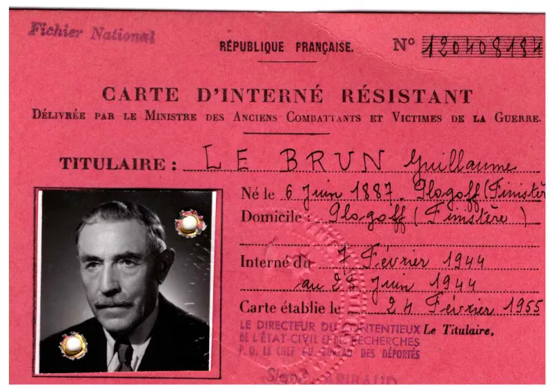 Hors Finistère Hors Finistère Carte du combattant Carte du combattant Voir la suite sur le mur de la mémoire Photo individuelle Photo individuelle PrécédentSuivant PrécédentSuivant Médailles Médailles PrécédentSuivant PrécédentSuivant Carte d'interné politique Carte d'interné politique Photo de groupe Photo de groupe PrécédentSuivant PrécédentSuivant Carte d'appartenance à un mouvement de Résistance Carte d'appartenance à un mouvement de Résistance PrécédentSuivant PrécédentSuivant Carte de membre FFI Carte de membre FFI PrécédentSuivant PrécédentSuivant Demi-billet de 5 francs Demi-billet de 5 francs PrécédentSuivant PrécédentSuivant Carte de Combattant Volontaire de la Résistance Carte de Combattant Volontaire de la Résistance Voir la suite sur le mur de la mémoire Carte de réfractaire Carte de réfractaire Voir la suite sur le mur de la mémoire Carte de déporté/interné résistant Carte de déporté/interné résistant PrécédentSuivant PrécédentSuivant Diplôme Diplôme PrécédentSuivant PrécédentSuivant Retrouvez tous les documents collectés Consulter tous les dons numériques Fonds Marcel Le Cleac'h (292 J) Fonds Yvan Hivert (301 J)